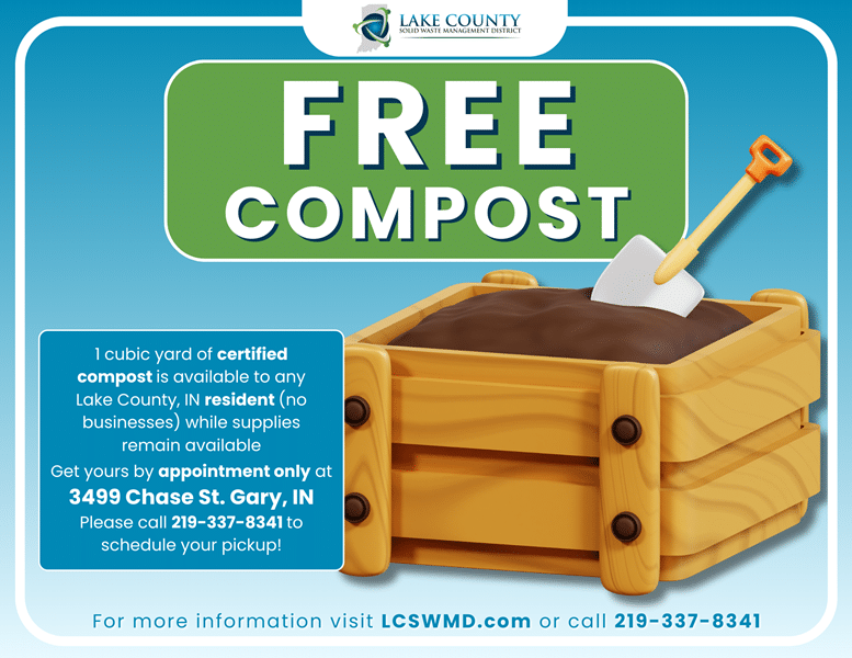 Please call Troy Taylor @ (219) 337-8341 or email [email protected] with any questions. Residents may call to schedule a pick-up for free compost.